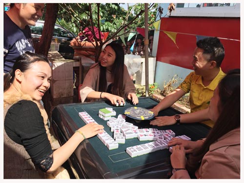 2018年4月15日,晴朗,空气也因昨天的淅沥春雨而格外的清透,沁人心脾。小伙伴们由公司统一安排的车辆陆续送到活动现场,大家分别挑选自己喜欢的活动——摘樱桃偿鲜、打牌竞技、登山观景、喝茶聊天等项目愉快的玩着,不时因一手漂亮的“清一色”而欢呼雀跃;会因摘到红而大的樱桃而满心欢喜;也为山边那一抹春色而驻足留影。。。此次活动,公司也特别考虑到部份员工,因平时忙于工作而疏于陪同家人,特意邀请员工家属一并参加,以感谢一直以来对其工作的理解和对多多28公司工作的支持!谢谢您们!他们中有的带上小孩去摘樱桃,爬山;有的带着不到一岁的小宝宝,以他那最纯真无邪的微笑向叔叔阿姨们问好,还有妈妈们一脸认真的交流着育儿经、闲聊生活琐事 ,大家亲切的交谈着 ,高兴时来个可爱的自拍。。。。。。一切只为享受这春色的美好。时间也随着这和谐而又轻松的氛围缓慢的到了太阳下山,此次春游活动以极具特色的美味晚餐完美收官。